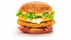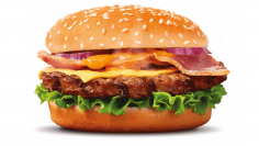 Bun, beef cutlet, bacon, onion, cucumber, cheese, jalapeño pepper, sauce, lettuce, Chips. 345/30 gr.
