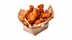 Chicken wings, caramel sauce, arugula, cherry tomatoes, salad dressing, microgreens. 510 grams.