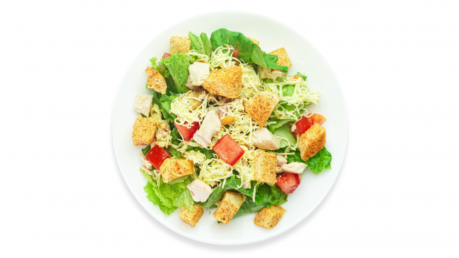Imagine a bed of crisp romaine lettuce, generously tossed in our creamy Caesar dressing, topped with perfectly grilled chicken breast. Each forkful is a harmonious combination of textures, from the leafy crunch of romaine to the juicy tenderness of the grilled chicken.